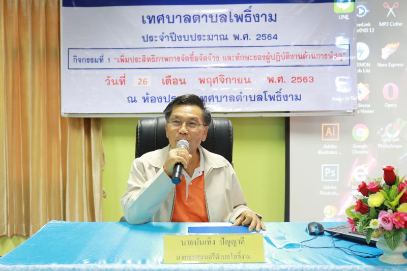 รายละเอียด : วันที่ ๒๖ พฤศจิกายน ๒๕๖๓ เวลา ๐๙.๓๐ น. กองคลัง เทศบาลตำบลโพธิ์งาม จัดโครงการเพิ่มประสิทธิภาพการจัดซื้อจัดจ้างและทักษะของการปฏิบัติงานด้านการพัสดุ โดยนายบันเทิง ปัญญาดี นายกเทศมนตรีตำบลโพธิ์งาม ประธานเปิดโครงการฯ ณ ห้องประชุมเทศบาลตำบลโพธิ์งาม และศูนย์ดิจิทัลชุมชนตำบลโพธิ์งาม