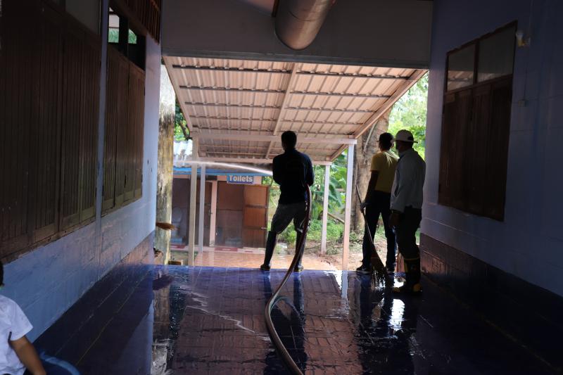 วันที่ ๑๒ กรกฎาคม ๒๕๖๒ เวลา ๐๘.๓๐ น. นำโดยนายอนุชา ช่อชบา รองปลัดเทศบาลตำบลโพธิ์งาม หัวหน้าสำนักปลัด ผู้อำนวยการกองการศึกษา พร้อมด้วยบุคลากรกองการศึกษา และทีมเจ้าหน้าที่งานป้องกันและบรรเทาสาธารณภัย เทศบาลตำบลโพธิ์งาม ร่วมกันทำความสะอาดโรงเรียนคลองแก้มช้ำ ซึ่งอยู่ในพื้นที่เทศบาลตำบลโพธิ์งาม เพื่อการป้องกันการระบาดและควบคุมโรคมือเท้าปากในเด็กนักเรียน โดยมีคณะครู อาสาสมัครสาธารณสุข และประชาชนใกล้เคียง ร่วมมือร่วมใจกันทำความสะอาดโรงเรียนด้วยกัน
