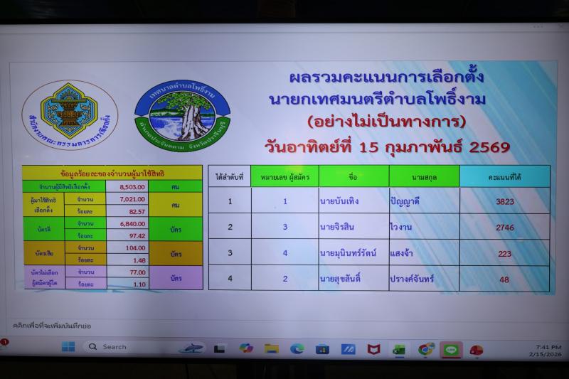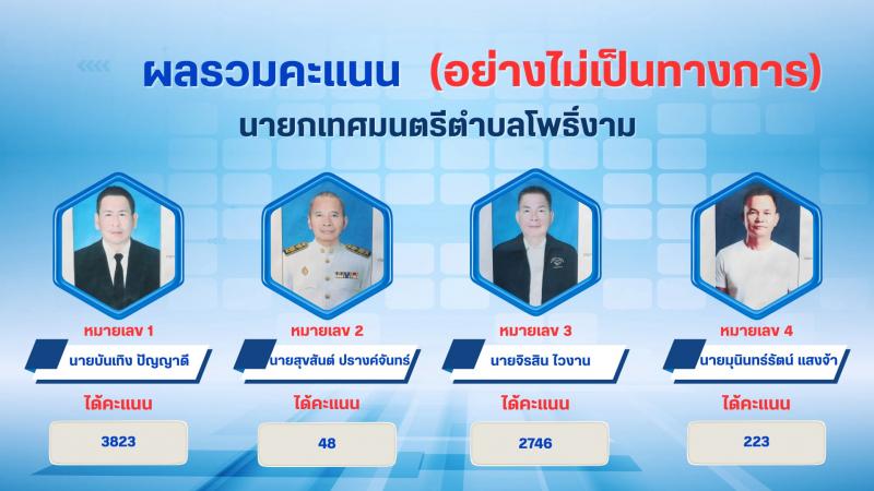 สรุปผลการรวมคะแนนเลือกตั้งนายกเทศมนตรีตำบลโพธิ์งาม (อย่างไม่เป็นทางการ)