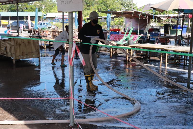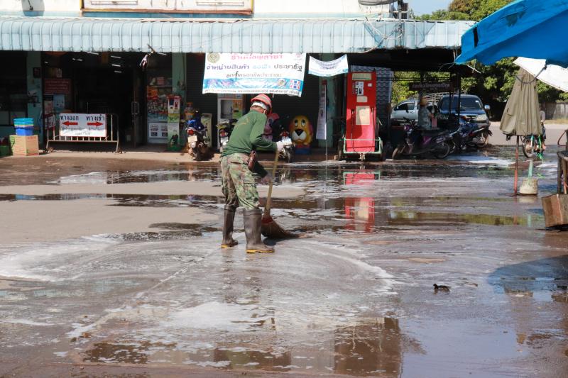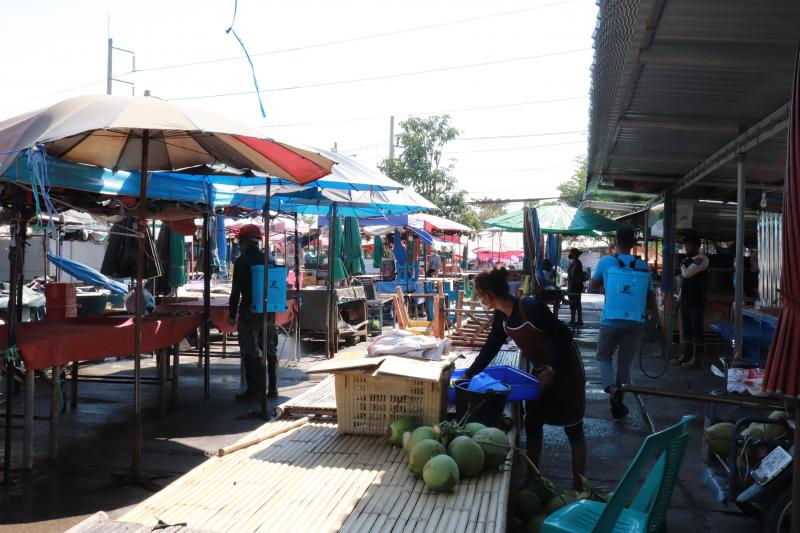 กิจกรรม ทำความสะอาด ฉีดพ่นยาฆ่าเชื้อ ให้กับตลาด ตามมาตรการควบคุมโรคติดเชื้อไวรัส COVID-19