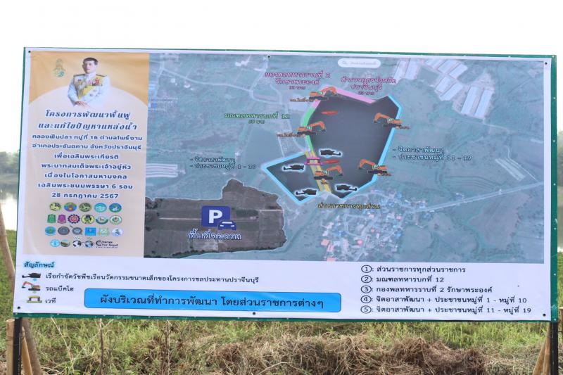 โครงการพัฒนาฟื้นฟูและแก้ไขปัญหาแหล่งน้ำคลองฟันปลา หมู่ที่ ๑๖ ตำบลโพธิ์งาม อำเภอประจันตคาม จังหวัดปราจีนบุรี เพื่อเฉลิมพระเกียรติพระบาทสมเด็จพระเจ้าอยู่หัว เนื่องในโอกาสมหามงคลเฉลิมพระชนมพรรษา ๗๒ พรรษา ๒๘ กรกฎาคม ๒๕๖๗