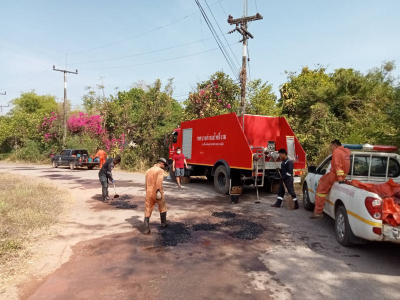 รายละเอียด : เมื่อวันที่ ๓๐-๓๑ มกราคม ๒๕๖๖ นายบันเทิง ปัญญาดี นายกเทศมนตรีตำบลโพธิ์งาม ได้สั่งการให้งานป้องกันและบรรเทาสาธารณภัย ร่วมกับกองช่าง เทศบาลตำบลโพธิ์งาม ออกดำเนินการซ่อมแซมถนนลาดยางมะตอย ภายในเขตเทศบาลตำบลโพธิ์งาม โดยดำเนินการต่อเนื่องมา ตั้งแต่สัปดาห์ที่แล้ว วันนี้ดำเนินการ ที่หมู่ ๑๖ บ้านทุ่งยาว ริมูมูมูมู เพื่อเป็นลดและป้องกันอุบัติเหตุที่จะเกิดขึ้นในการขับขี่ และในช่วงสัปดาห์ ต่อไปจะดำเนินการซ่อมแซม ในหมู่ที่ยังไม่ได้ดำเนินการ ต่อไป