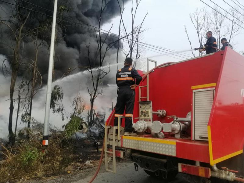 เทศบาลตำบลโพธิ์งาม ร่วมปฏิบัติการระงับเหตุไฟไหม้โรงงานขยะรีไซเคิ่ล ตำบลไม้เค็ด อำเภอเมือง จังหวัดปราจีนบุรี