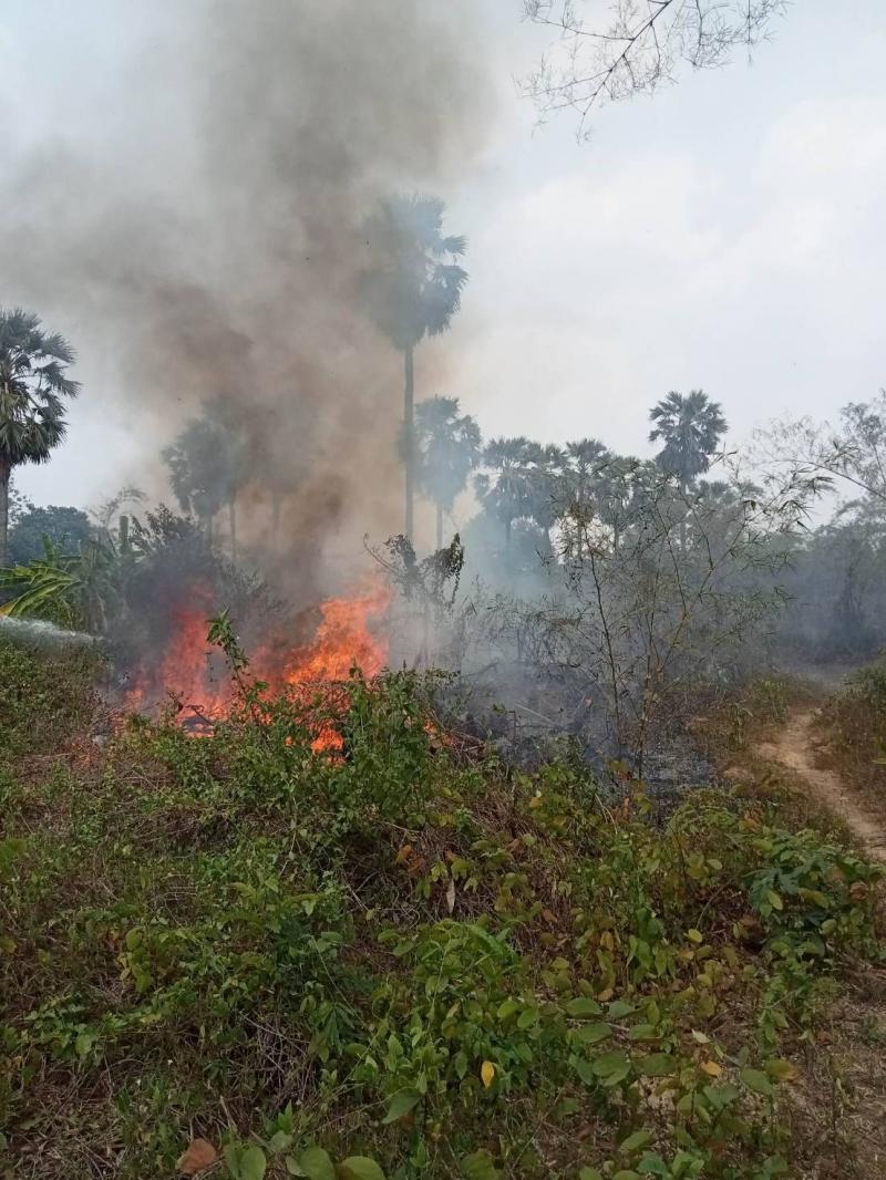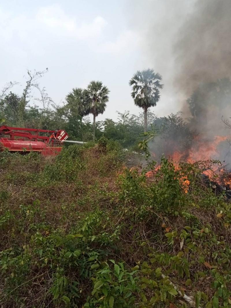 เหตุไฟไหม้หญ้าแห้งบริเวณข้างฝายน้ำเก่า พื้นที่หมู่ ๑๔ บ้านคลองฟันปลา ตำบลโพธิ์งาม