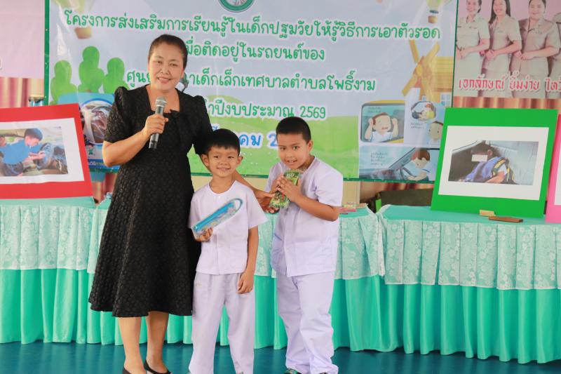 โครงการส่งเสริมการเรียนรู้ในเด็กปฐมวัยให้รู้วิธีการเอาตัวรอดเมื่อติดอยู่ในรถยนต์ ของศูนย์พัฒนาเด็กเล็กเทศบาลตำบลโพธิ์งาม