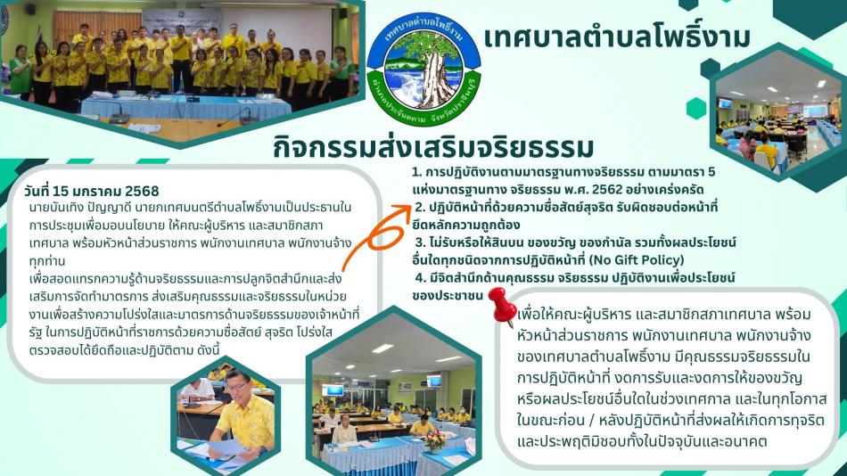 กิจกรรมส่งเสริมจริยธรรม เพื่อมอบนโยบาย ให้คณะผู้บริหาร และสมาชิกสภาเทศบาล พร้อมหัวหน้าส่วนราชการ พนักงานเทศบาล พนักงานจ้างทุกท่าน [15 มกราคม 2568]