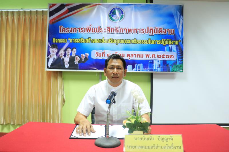 วันที่ ๔ กันยายน ๒๕๖๒ เวลา ๐๙.๐๐ น. นายบันเทิง ปัญญาดี นายกเทศมนตรีตำบลโพธิ์งาม เป็นประธานเปิดโครงการเพิ่มประสิทธิภาพการปฏิบัติงาน กิจกรรม "การเสริมสร้างและส่งเสริมคุณธรรมจริยธรรมในการปฏิบัติงาน"...