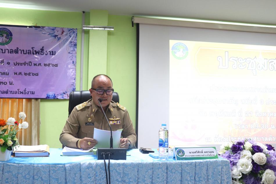 การประชุมสภาเทศบาลตำบลโพธิ์งาม สมัยประชุมสามัญ สมัยที่ 3 ครั้งที่ 1 ประจำปี พ.ศ. 2568 [21 สิงหาคม 2568]