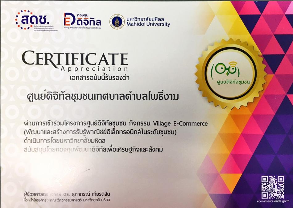 เทศบาลตำบลโพธิ์งาม ผ่านการเข้าร่วมโครงการศูนย์ดิจิทัลชุมชน กิจกรรม Village E-Commerce (พัฒนาและสร้างการรับรู้พาณิชย์อิเล็กทรอนิกส์ในระดับชุมชน) [11 พฤษภาคม 2564]