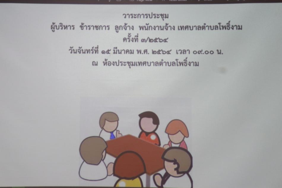 การประชุม ผู้บริหาร ข้าราชการ ลูกจ้าง พนักงานจ้าง เทศบาลตำบลโพธิ์งาม [15 มีนาคม 2564]