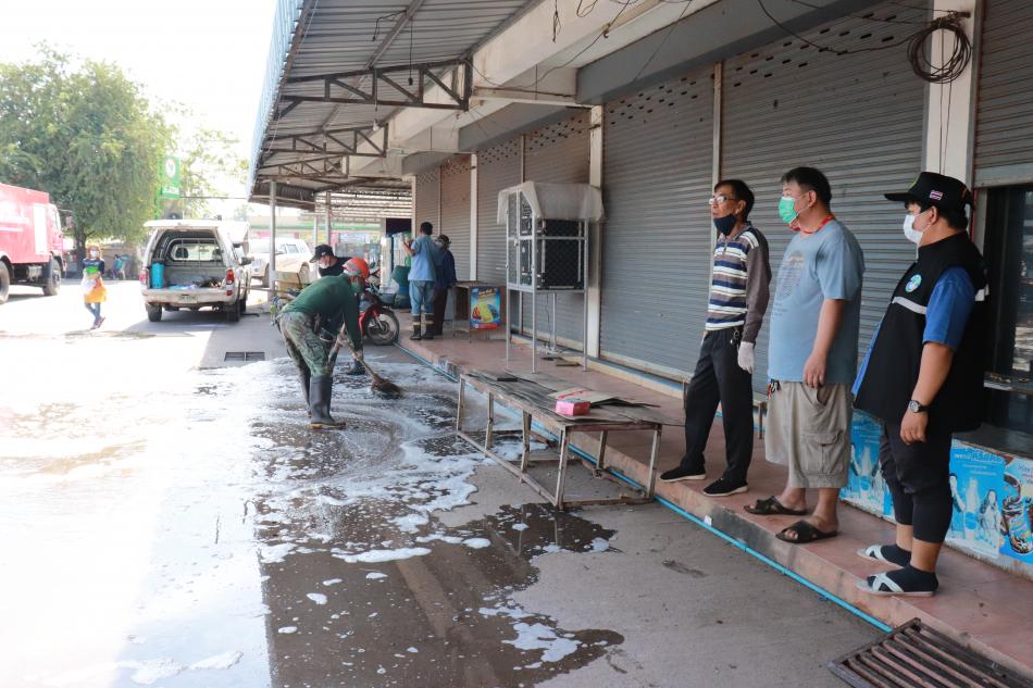 กิจกรรม ทำความสะอาด ฉีดพ่นยาฆ่าเชื้อ ให้กับตลาด ตามมาตรการควบคุมโรคติดเชื้อไวรัส COVID-19